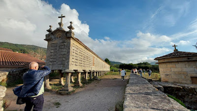Visitamos el conjunto arquitectónico de Carnota, lo componen el hórreo de 34,74 m. de largo, un palomar y la Iglesia Parroquial de Santa Comba.
